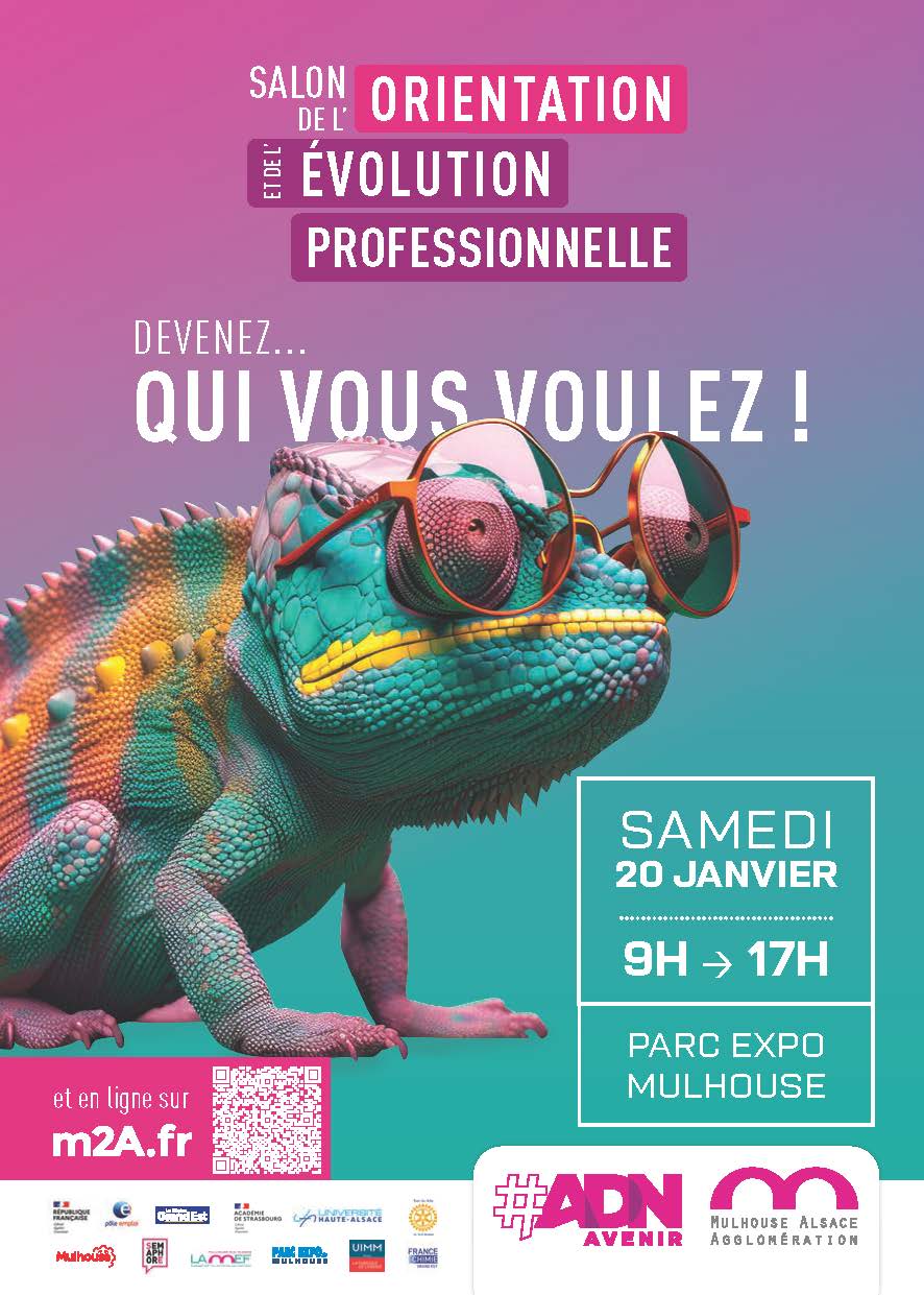 Venez nous rencontrer lors du Salon de l'Orientation et de l'Évolution Professionnelle au Parc des Exposition de Mulhouse le samedi 20 janvier 2024 de 09h00 à 17h00 !